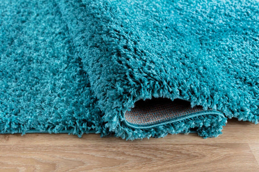 Bestla Salvador EXTRA THICK HEAVY 5CM PILE SOFT SHAGGY RUGS MODERN AREA RUGS BEDROOM HALL RUGS - Teal Blue